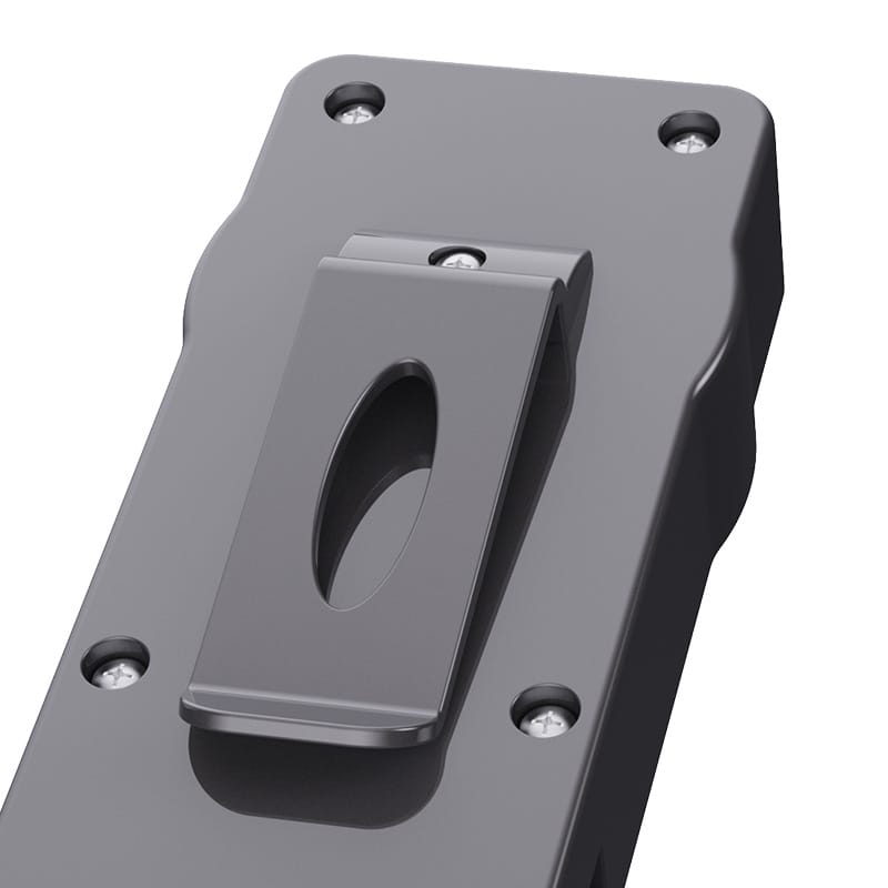 La clip posteriore rinforzata permette di agganciare il corpo macchina ai pantaloni, al grembiule o al camice, mantenendo ordine, fluidità e libertà di movimento durante l’utilizzo.